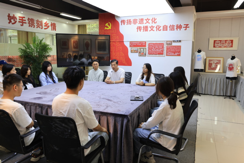為了弘揚中華優(yōu)良傳統(tǒng)文化,增強學(xué)生的文化自信,充分發(fā)揮“五老”作用,教育引導(dǎo)廣大青年學(xué)生聽黨話、感黨恩、跟黨走,6月14日,藝術(shù)創(chuàng)意學(xué)院邀請校關(guān)工委銀發(fā)關(guān)愛工作室張金興老師走進藝術(shù)創(chuàng)意學(xué)院金壇刻紙楊兆群大師工作室,開展“紅色剪紙話黨史,非遺文化映初心“紅色主題新思想公開課。