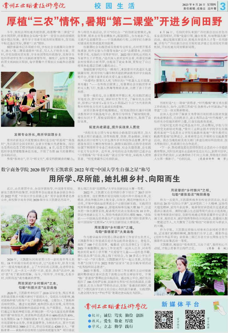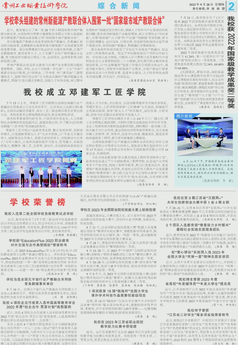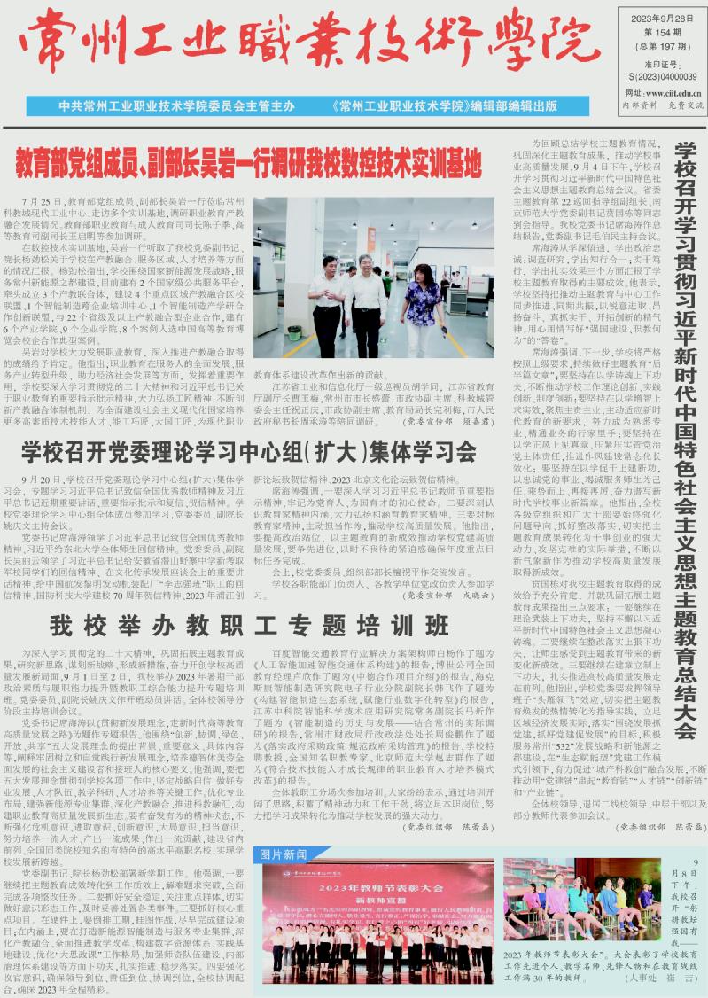 常州工業(yè)職業(yè)技術(shù)學(xué)院報(bào)2023年9月28日第154期總第197期