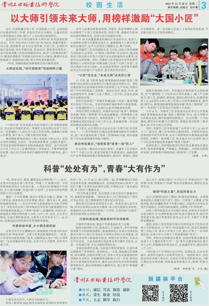 常州工業(yè)職業(yè)技術(shù)學(xué)院報(bào)2023年11月28日第155期總第198期