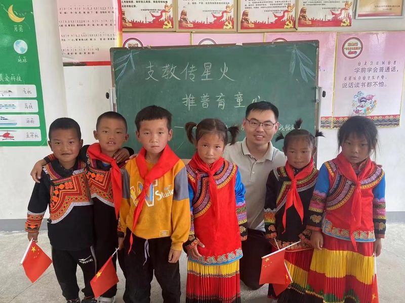 6月26日,常州工業(yè)職業(yè)技術(shù)學(xué)院旅游與康養(yǎng)學(xué)院組織師生前往大涼山,以當(dāng)?shù)赜捉厅c(diǎn)為主陣地,開(kāi)展普通話推廣活動(dòng)。身在北京掛職的王風(fēng)圳毫不猶豫地加入了實(shí)踐團(tuán)隊(duì)。在大涼山支教的五天里,王風(fēng)圳深刻感受到孩子們對(duì)知識(shí)的渴望。課堂上的他,利用“工、共、貢”的普通話讀音,闡述了這些字眼背后的深刻涵義,并將普通話教學(xué)和愛(ài)黨愛(ài)國(guó)的家國(guó)情懷緊密結(jié)合,因勢(shì)利導(dǎo),循循善誘。課堂氣氛熱烈,孩子們都很喜歡面前的這位“王老師”。