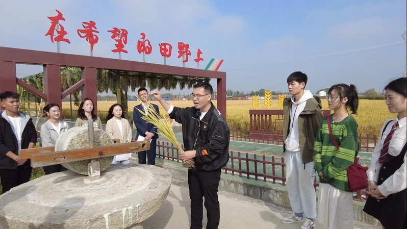 這是一堂關(guān)于“糧食安全”的實(shí)踐課。只見(jiàn)王風(fēng)圳手拿一株水稻,用管仲以糧滅國(guó)的故事引出糧食安全的重要性,又以基辛格之論、西歐和東亞等國(guó)的糧食問(wèn)題為例,運(yùn)用“繩索變成繩套”的形象比喻,讓同學(xué)們深刻認(rèn)識(shí)到中國(guó)人要把飯碗牢牢端在自己手中,激勵(lì)大家扣好人生的第一粒扣子,在努力奮斗中變成中國(guó)的一粒好種子。