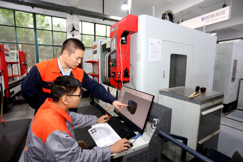 任教12年來(lái),吳傳權(quán)深耕教學(xué)一線(xiàn),承擔(dān)數(shù)控技術(shù)專(zhuān)業(yè)教學(xué)工作,擔(dān)任技能競(jìng)賽指導(dǎo)老師,他把自己掌握的技能毫無(wú)保留地傳授給學(xué)生,把參賽經(jīng)驗(yàn)和學(xué)生們分享。在學(xué)生心中,吳傳權(quán)就是技能大神。