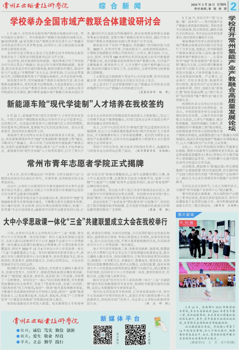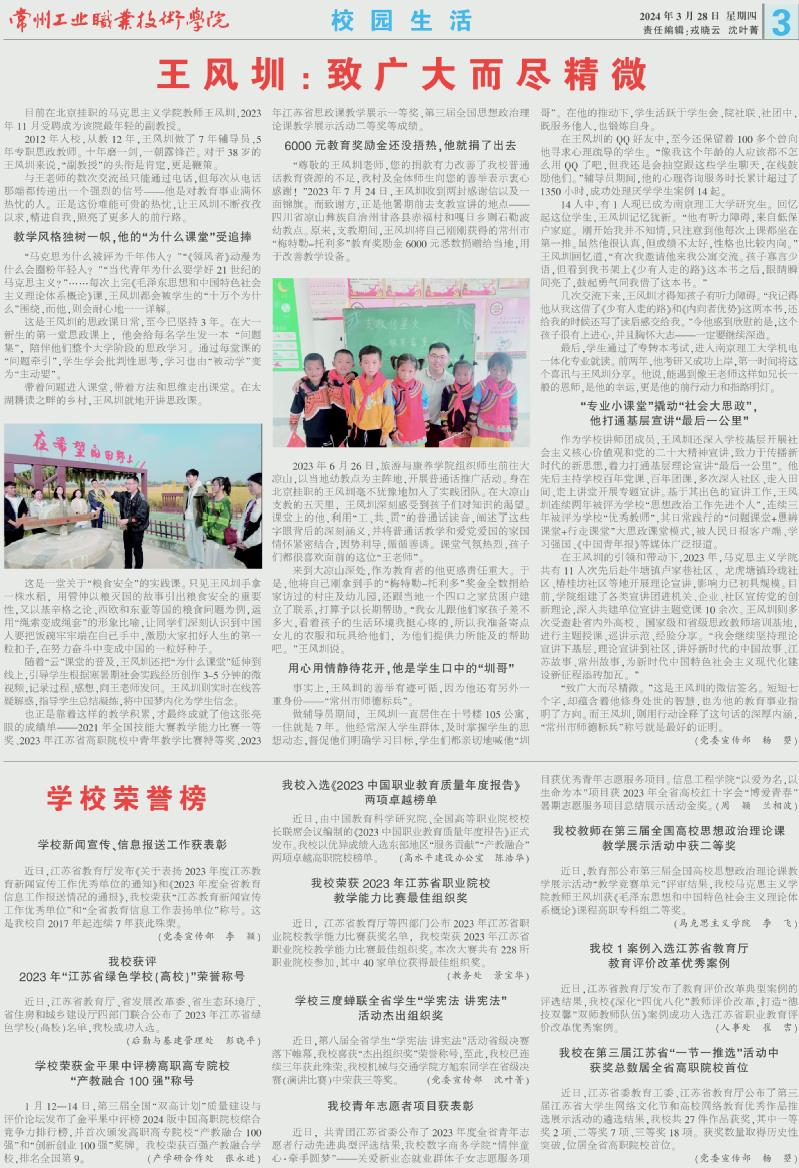常州工業(yè)職業(yè)技術(shù)學(xué)院報(bào)2024年3月28日第156期總第199期
