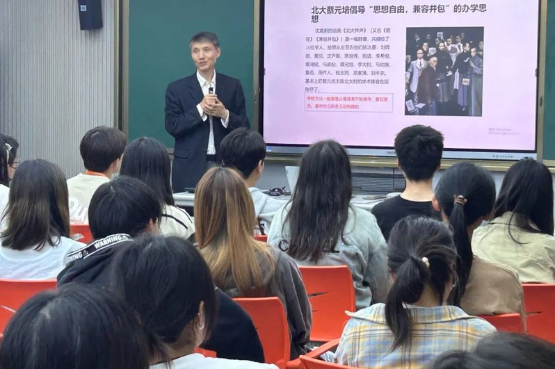 校園文化與學(xué)校文化有何不同,什么又是校本文化資源?倪教授從校園文化的基本概念講起,帶領(lǐng)同學(xué)們回顧了從色彩繽紛的校園文化到主題明確的學(xué)校文化這一發(fā)展歷程。他詳細(xì)闡述了“愛(ài)崗敬業(yè)、自強(qiáng)不息”的鄧建軍精神和“孝老愛(ài)親、明禮友善”的傳統(tǒng)文化,勉勵(lì)同學(xué)們既要錨定干事創(chuàng)業(yè)的“專精特新”,也要追求幸福美好的家庭生活。分享會(huì)結(jié)束,同學(xué)們紛紛表示受益匪淺,不僅系統(tǒng)學(xué)習(xí)了校園文化的人文知識(shí),還加深了對(duì)“雙輪聯(lián)動(dòng)”學(xué)校文化的理解。
