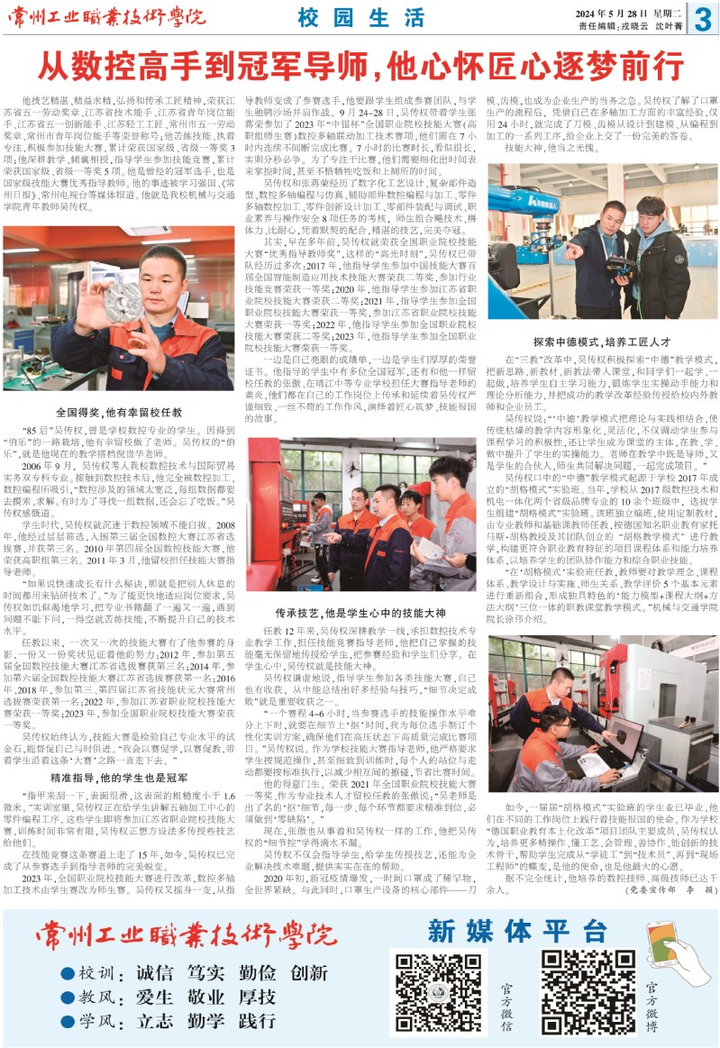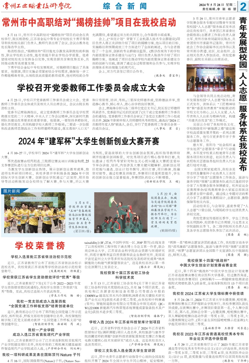 常州工業(yè)職業(yè)技術(shù)學(xué)院報2024年5月28日第157期總第200期