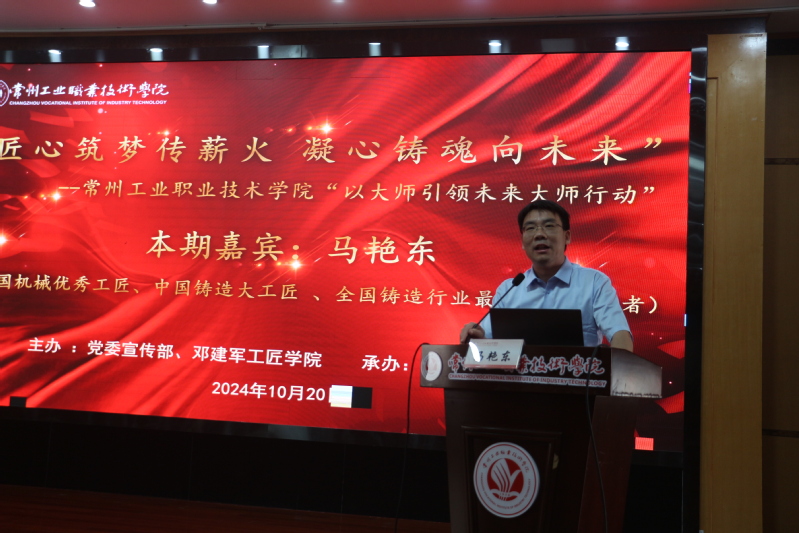 10月20日,機(jī)械與交通學(xué)院特邀中國鑄造大工匠、最美科技工作者、龍城工匠、江蘇恒立液壓股份有限公司副總經(jīng)理馬艷東校友與2024級學(xué)生分享技能成才事跡。講座由機(jī)械與交通學(xué)院黨總支書記陳曉敏主持。