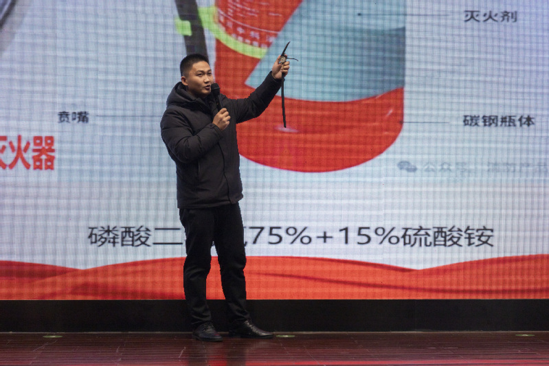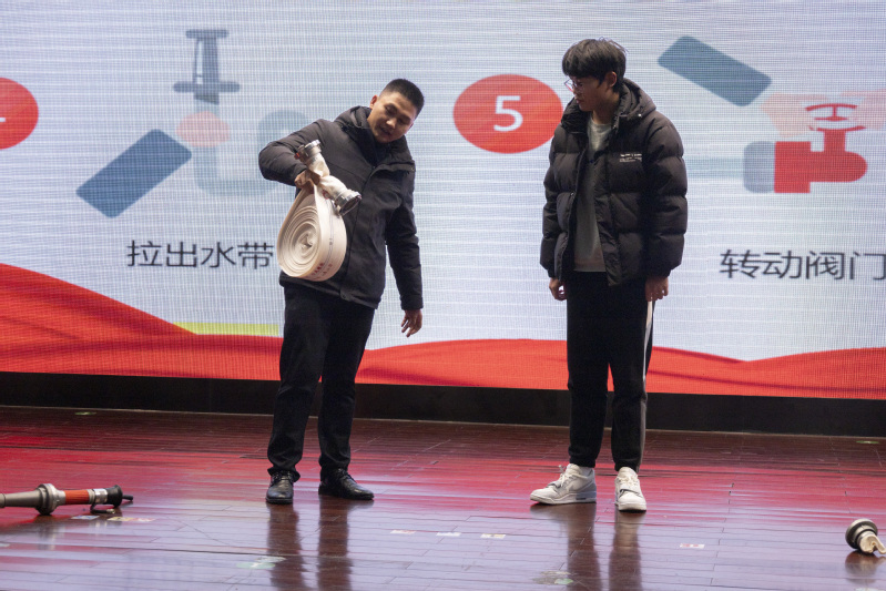 倪鵬向同學(xué)們介紹了當(dāng)前消防安全形勢,并結(jié)合最近發(fā)生的公共場所火災(zāi)案例,詳細(xì)講解了火災(zāi)特點(diǎn)、火災(zāi)分類、火災(zāi)初期滅火基本方法、常見滅火器材操作使用及適用范圍、火災(zāi)疏散自救互救方法等內(nèi)容。培訓(xùn)中,倪鵬邀請同學(xué)們上臺進(jìn)行滅火器、消防栓的使用演練,切實(shí)提升大家的火災(zāi)自救和逃生技能。