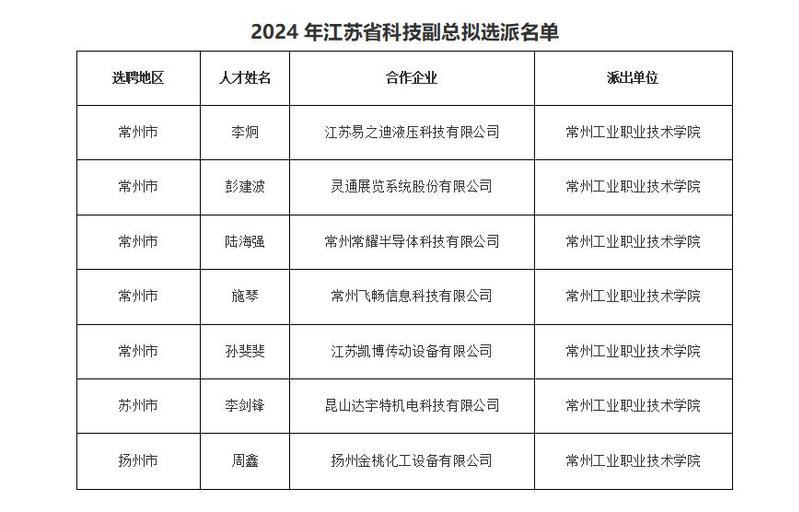 12月9日,從產(chǎn)學(xué)研合作處傳來喜訊,在日前由江蘇省科技廳公示的2024年江蘇省科技副總項目擬入選對象名單中,我校李炯等7名教師榜上有名。