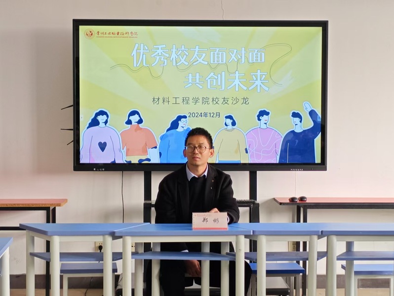 12月11日下午,材料工程學院舉辦“優(yōu)秀校友面對面共創(chuàng)未來”活動?;顒犹匮麅?yōu)秀校友、2024級新生兼職班主任鄭彬,為學院高分子材料智能制造專業(yè)2024級學生傳授職場經(jīng)驗。
