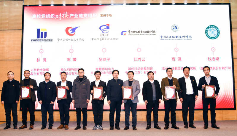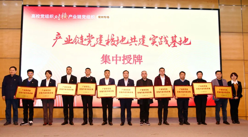 會上發(fā)布了常州市“強基固鏈·校地融合”戰(zhàn)略合作倡議,推出了《在常高校助力“1028”產(chǎn)業(yè)體系優(yōu)勢平臺(院系)索引》。與會領導為江蘇高?!半p帶頭人”教師黨支部書記“強國行”專項行動——常州賦能站揭牌。