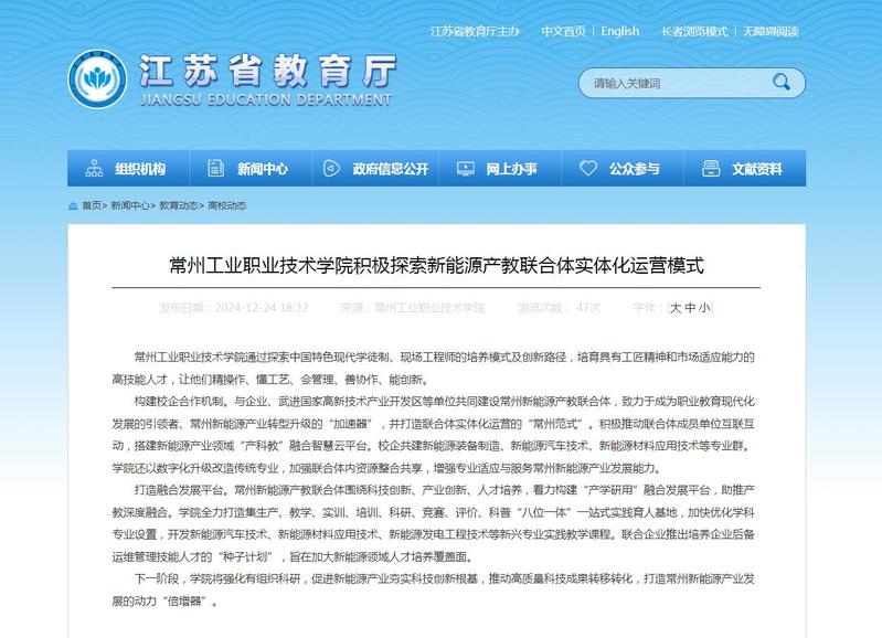 江蘇省教育廳:常州工業(yè)職業(yè)技術(shù)學(xué)院積極探索新能源產(chǎn)教聯(lián)合體實(shí)體化運(yùn)營(yíng)模式
