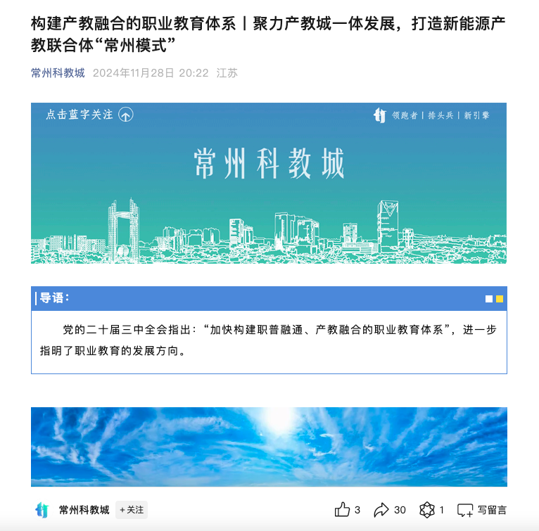 常州科教城:構(gòu)建產(chǎn)教融合的職業(yè)教育體系丨聚力產(chǎn)教城一體發(fā)展,打造新能源產(chǎn)教聯(lián)合體“常州模式”
