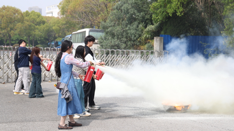 隨后,師生們分組排隊(duì)有序參與滅火演練。他們手持滅火器,面對(duì)濃煙升騰的模擬火源,臨危不亂、冷靜沉著地相互提醒、配合默契,一人托住滅火器底部,一人握緊提把,執(zhí)行正確操作步驟。從拔掉保險(xiǎn)銷、對(duì)準(zhǔn)火源根部到按壓把手,當(dāng)最后一絲火苗在白霧中熄滅,標(biāo)志著師生們齊心協(xié)力成功完成了模擬滅火任務(wù)。