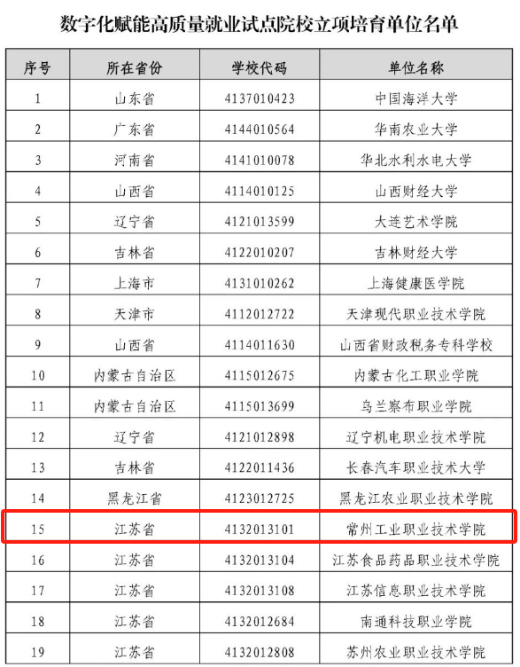 近日,高校畢業(yè)生就業(yè)協(xié)會(huì)發(fā)布了《關(guān)于數(shù)字化賦能高質(zhì)量就業(yè)試點(diǎn)院校擬立項(xiàng)培育單位名單的公示》。經(jīng)自主申報(bào)、資格審查、專家評議等程序,全國54所高校確定立項(xiàng),我校成功獲批成為“數(shù)字化賦能高質(zhì)量就業(yè)”試點(diǎn)院校立項(xiàng)培育單位。