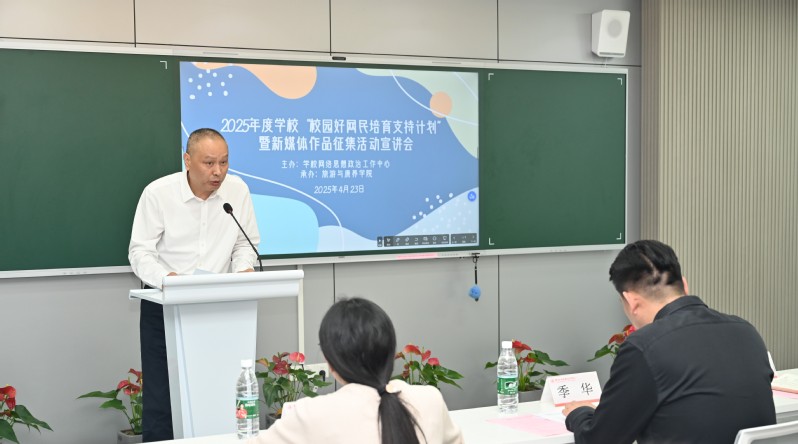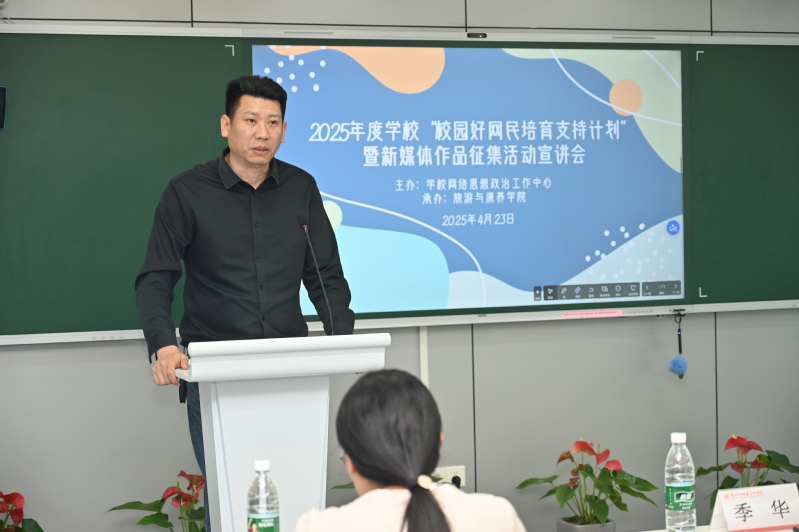 4月23日,我校開展2025年度“校園好網(wǎng)民培育支持計(jì)劃”暨新媒體作品征集展示活動(dòng)宣講會(huì)。黨委副書記毛伯民,黨委委員、宣傳部部長季華出席活動(dòng)。