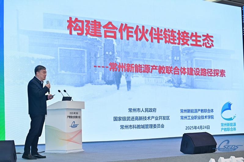 4月24日,2025(第二屆)產(chǎn)教融合發(fā)展大會(huì)在四川瀘州舉行。大會(huì)以“構(gòu)建產(chǎn)教融合新格局,賦能新質(zhì)生產(chǎn)力發(fā)展”為主題,來自全國(guó)多地政府部門、教育行政部門,普通高校、職業(yè)院校、行業(yè)企業(yè)以及中央媒體的400余位嘉賓與會(huì)。作為2024年教育部產(chǎn)教融合、校企合作典型案例學(xué)校代表,我校黨委書記席海濤受邀參加并作常州新能源產(chǎn)教聯(lián)合體建設(shè)典型案例主題報(bào)告。