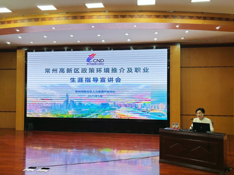 孫璇為同學(xué)們帶來精彩的就業(yè)指導(dǎo)宣講。她從常州高新區(qū)的區(qū)位優(yōu)勢、歷史文化底蘊、產(chǎn)業(yè)活力以及人才政策等多方面深入闡述了常州高新區(qū)的獨特魅力與發(fā)展機遇,為同學(xué)們呈現(xiàn)了一個立體、多元的常州高新區(qū),并詳細解讀了一系列針對高校畢業(yè)生就業(yè)創(chuàng)業(yè)的扶持政策,讓同學(xué)們了解常州高新區(qū)社會經(jīng)濟發(fā)展?fàn)顩r和對人才的需求,并誠邀同學(xué)們將常州高新區(qū)作為職業(yè)的首選之地、啟航之地、圓夢之地。