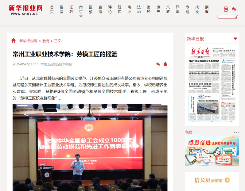 新華報(bào)業(yè)網(wǎng):常州工業(yè)職業(yè)技術(shù)學(xué)院:勞模工匠的搖籃