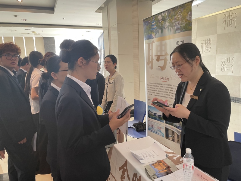 本次雙選會匯聚了常州中吳賓館、南京新華傳媒酒店、蘇州尼依格羅酒店、張家港暨陽湖大酒店等近二十家業(yè)內(nèi)知名企業(yè),涵蓋住宿和餐飲類、烹飪類等多個領(lǐng)域,搭建了校企人才對接平臺,為學(xué)生提供了豐富的實習(xí)選擇,拓寬了他們對行業(yè)的了解。雙選會現(xiàn)場氣氛熱烈,求職氛圍濃厚,學(xué)生與企業(yè)招聘代表深入交流,圍繞崗位技術(shù)要求與職業(yè)發(fā)展路徑進(jìn)行積極探討。