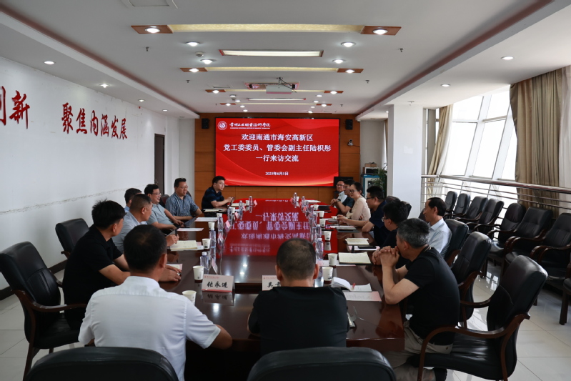 6月5日,南通海安高新區(qū)黨工委委員、管委會副主任陸枳彤率政企校聯(lián)合代表團蒞臨我校考察交流產(chǎn)教聯(lián)合體建設(shè)工作。校黨委書記席海濤出席,會議由副校長檀祝平主持。