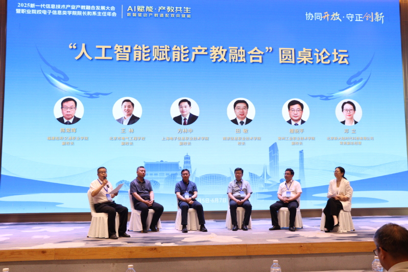 此外,在聚焦“十五五”規(guī)劃——職業(yè)教育金教材金課程建設(shè)創(chuàng)新發(fā)展圓桌論壇上,與會(huì)嘉賓聚焦 “人工智能驅(qū)動(dòng)專業(yè)變革”與“產(chǎn)教融合破局路徑” 兩大核心議題展開討論,檀祝平作主題發(fā)言。他就信息化專委會(huì)對(duì)學(xué)校信息化建設(shè)的大力支持表示感謝,并結(jié)合學(xué)校新能源聯(lián)合體平臺(tái)建設(shè),分享了學(xué)校以數(shù)字技術(shù)賦能教育教學(xué)的相關(guān)舉措。他強(qiáng)調(diào)了人工智能賦能專業(yè)建設(shè)頂層設(shè)計(jì)的重要性,闡述了學(xué)校在人工智能模型構(gòu)建、課程教材、教師隊(duì)伍建設(shè)等方面的整體理念和持續(xù)推進(jìn)措施。同時(shí),他還圍繞學(xué)校在AI賦能專業(yè)變革過程中積極鏈接信息化龍頭企業(yè)資源,強(qiáng)化產(chǎn)教融合的創(chuàng)新舉措進(jìn)行了分享,展現(xiàn)了學(xué)院在電子信息類教學(xué)領(lǐng)域的專業(yè)性和前瞻性。