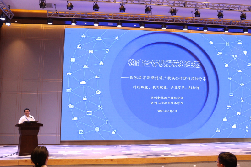 在產(chǎn)教融合機(jī)制創(chuàng)新與突破發(fā)展專題論壇中,檀祝平作題為《構(gòu)建合作伙伴鏈接生態(tài)——常州新能源產(chǎn)教聯(lián)合體建設(shè)路徑探索》的報(bào)告分享。他指出,當(dāng)前聯(lián)合體建設(shè)面臨著主體邊界分化造成效能削弱、實(shí)體運(yùn)行虛化造成合作松散、制度執(zhí)行僵化造成創(chuàng)新受阻等現(xiàn)實(shí)困難。為此,常州新能源產(chǎn)教聯(lián)合體從五個(gè)方面進(jìn)行了實(shí)踐探索:一是以區(qū)位優(yōu)勢(shì)為契機(jī)、組織架構(gòu)為統(tǒng)領(lǐng),破解體制機(jī)制壁壘;二是以鏈主企業(yè)為龍頭、鏈上企業(yè)為羽翼,構(gòu)建“五金”建設(shè)基座;三是以大院大所為牽引、科技創(chuàng)新為動(dòng)力,打造“產(chǎn)科教研創(chuàng)”新生態(tài);四是以黨建元素為引擎、紅色文化為底蘊(yùn),賦能聯(lián)合體協(xié)同發(fā)展合力;五是搭建信息化治理基座,促進(jìn)產(chǎn)教供需精準(zhǔn)對(duì)接,推動(dòng)產(chǎn)教融合質(zhì)量提升,實(shí)現(xiàn)多方主體創(chuàng)新協(xié)同。