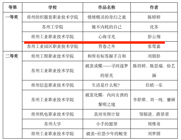 6月11日,從學(xué)工處傳來喜訊,在蘇南地區(qū)大學(xué)生心理健康教育研究中心近期主辦的系列活動中,我校學(xué)生作品榮獲一等獎2項、二等獎3項、三等獎1項,6位教師榮獲“優(yōu)秀指導(dǎo)老師”稱號,我校在2個項目中榮獲“優(yōu)秀組織獎”。