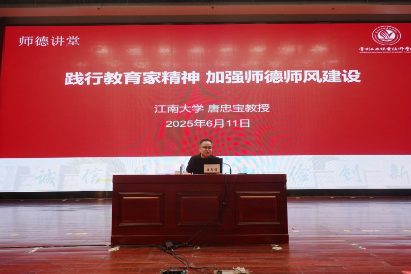 6月11日,我校邀請江南大學(xué)馬克思主義學(xué)院唐忠寶教授來校作“踐行教育家精神 加強師德師風(fēng)建設(shè)”師德師風(fēng)專題講座。講座由黨委副書記毛伯民主持,學(xué)校全體教職工聆聽了本次講座。