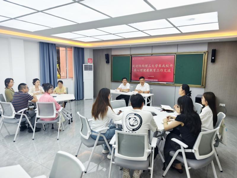 6月26日,陜西理工大學(xué)心理健康教育中心主任、學(xué)生工作部(處)副部(處)長黃存良一行來??疾旖涣鳌8毙iL檀祝平接待來賓一行。