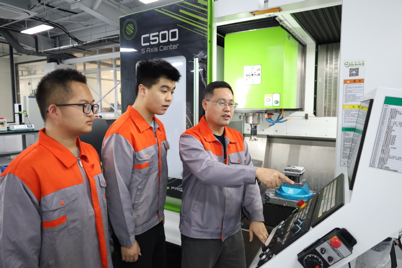 程剛深知,教學改革不僅僅是教學方法的變革,更是教育理念的更新。他和團隊深入剖析傳統(tǒng)教學模式的弊端,結合中德胡格教學改革的理念,研發(fā)出一套“項目載體+模塊課程”的梯度教學模式——一年級學手動沖壓機制作,二年級學做自動分揀機,而到了三年級,學生們則要挑戰(zhàn)智能鉆孔機的制作?!斑@種教學模式,讓學生在做中學、學中做、學做一體,促使他們在解決問題中得到成長,鍛煉創(chuàng)新思維和動手能力。”