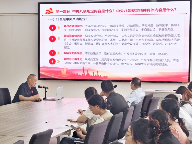 6月23日,黨委委員、副校長檀祝平以《鍥而不舍落實中央八項規(guī)定精神》為題,為基礎教學部與體育工作部黨總支、旅游與康養(yǎng)學院黨總支全體黨員講授專題黨課。他從中央八項規(guī)定的主要內容切入,闡述了黨的十八大以來黨中央深入貫徹中央八項規(guī)定精神的實踐歷程,列舉了多起違反中央八項規(guī)定的典型案例。他強調,作為高校教師黨員,肩負著立德樹人的重要使命,更應在落實中央八項規(guī)定精神上走在前、作表率,以優(yōu)良黨風帶動教風學風,以清正廉潔的作風涵養(yǎng)校園育人環(huán)境。