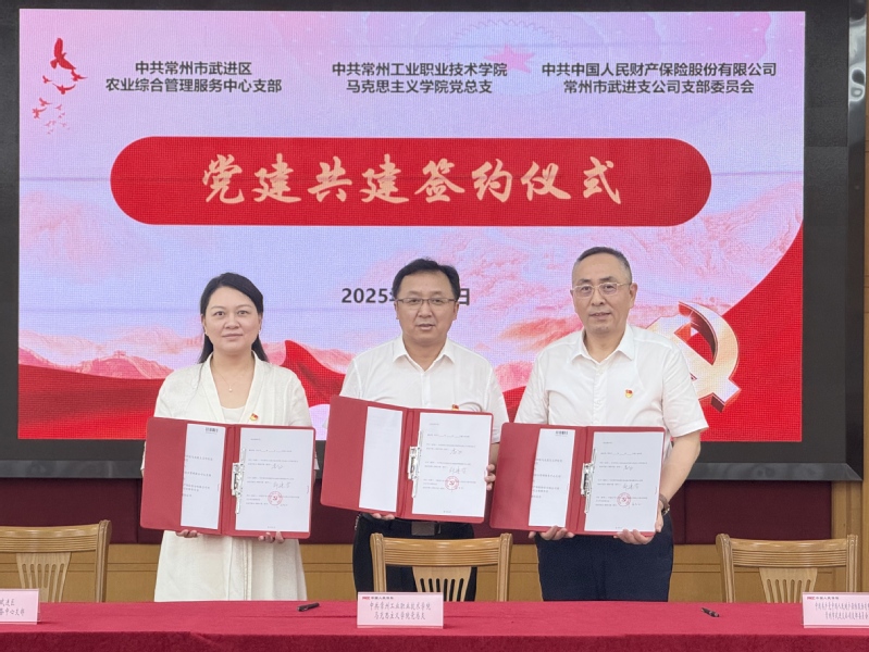 7月3日,我校馬克思主義學(xué)院黨總支、中國人民財(cái)產(chǎn)保險(xiǎn)武進(jìn)支公司黨支部、武進(jìn)區(qū)農(nóng)業(yè)綜合管理服務(wù)中心黨支部聯(lián)合舉行黨建共建簽約儀式。三方黨組織負(fù)責(zé)人出席活動(dòng)。