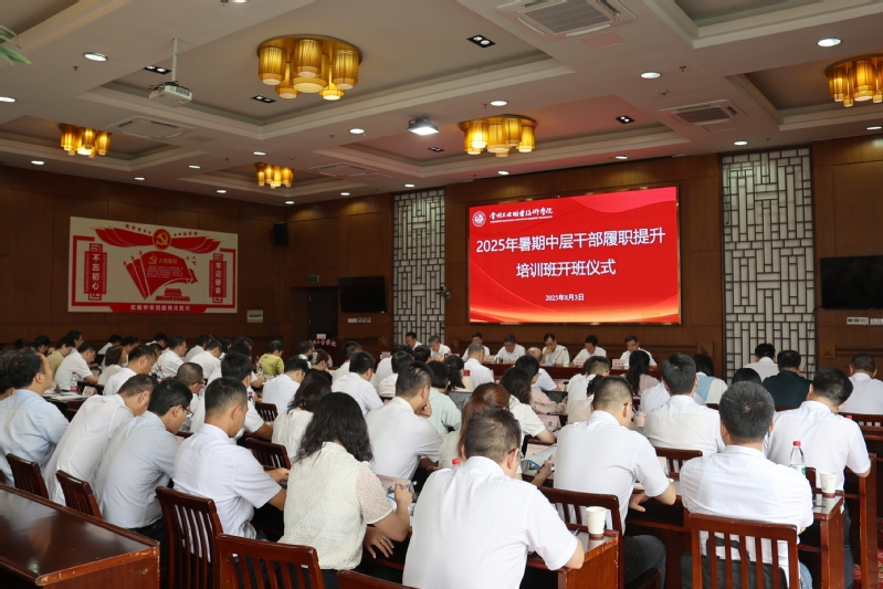 暑假期間,我校黨校聚焦“十四五”收官與“十五五”謀劃的關(guān)鍵節(jié)點,舉辦2025年暑期中層干部履職能力提升培訓(xùn)班,旨在深入學(xué)習(xí)貫徹習(xí)近平新時代中國特色社會主義思想,貫徹落實中共中央印發(fā)的《干部教育培訓(xùn)工作條例》,持續(xù)推進(jìn)我校干部隊伍“鑄魂賦能”工程。黨委副書記吳麗云主持開班儀式,校領(lǐng)導(dǎo)班子成員參加并分階段主持培訓(xùn)會議。