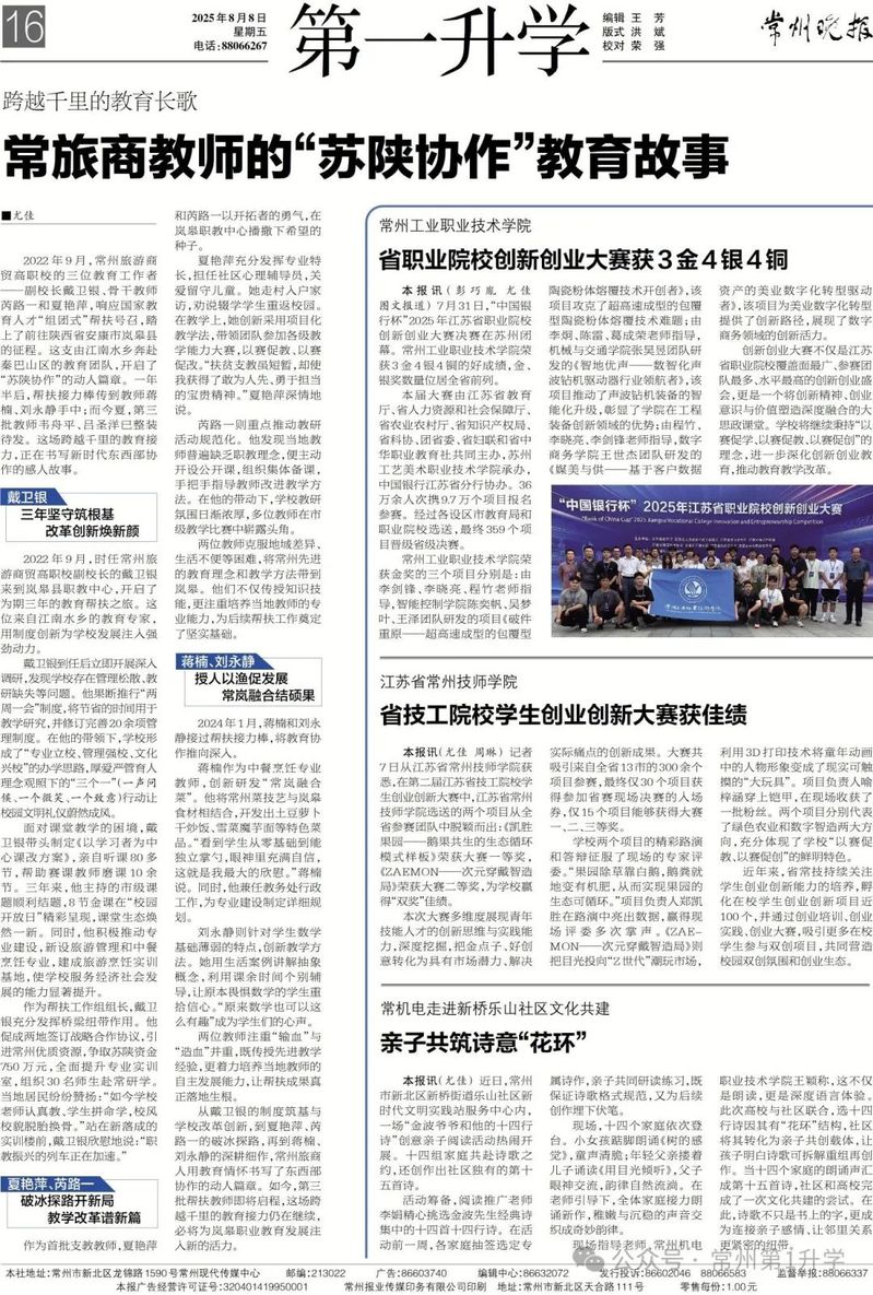 常州晚報(bào)·第一升學(xué):常州工業(yè)職業(yè)技術(shù)學(xué)院:省職業(yè)院校創(chuàng)新創(chuàng)業(yè)大賽獲3金4銀4銅