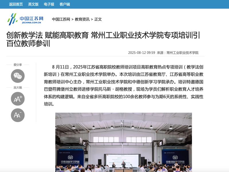 中國(guó)江蘇網(wǎng):創(chuàng)新教學(xué)法 賦能高職教育 常州工業(yè)職業(yè)技術(shù)學(xué)院專(zhuān)項(xiàng)培訓(xùn)引百位教師參訓(xùn)