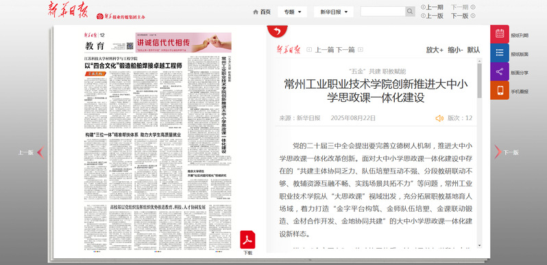 新華日報:“五金”共建 職教賦能 常州工業(yè)職業(yè)技術學院創(chuàng)新推進大中小學思政課一體化建設