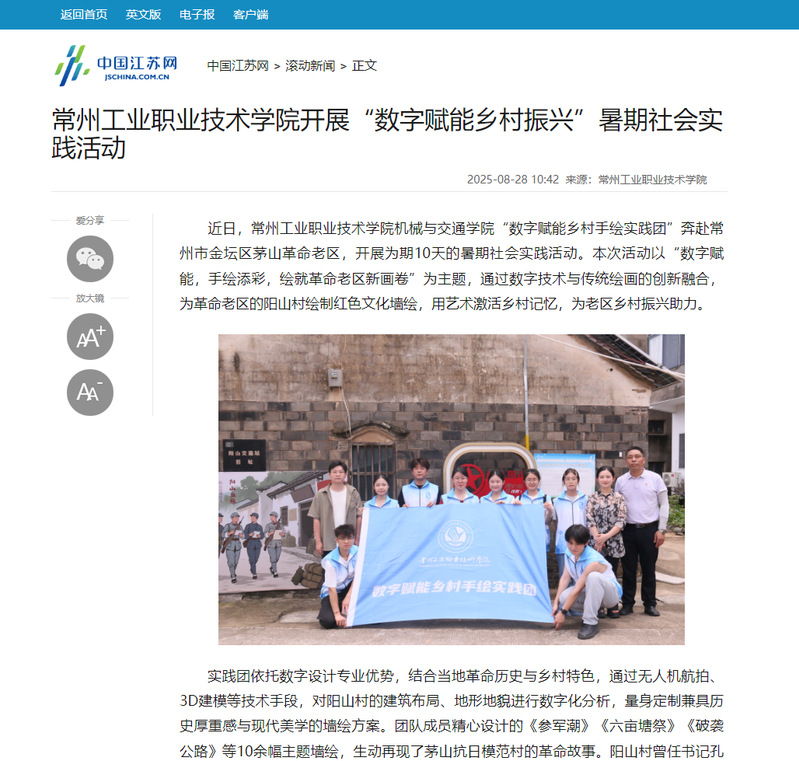 中國江蘇網(wǎng):常州工業(yè)職業(yè)技術(shù)學(xué)院開展“數(shù)字賦能鄉(xiāng)村振興”暑期社會實(shí)踐活動