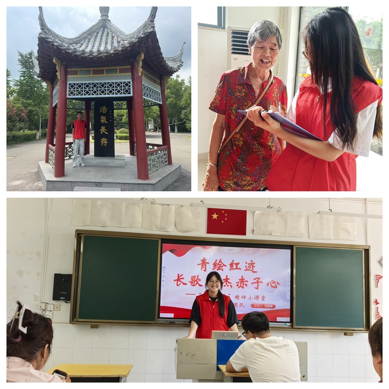 返鄉(xiāng)多維宣傳,追尋先輩足跡。8月,團(tuán)隊(duì)成員紛紛返回各自家鄉(xiāng)開展宣傳,化身為“三杰”精神火種的傳播者。在社區(qū)街巷,志愿者們?nèi)霊粜v,結(jié)合地方歷史講述三杰的奮斗故事;在故鄉(xiāng)的紅色場館,志愿者們前往參觀學(xué)習(xí),帶領(lǐng)鄰里鄉(xiāng)親重溫革命歷程,尋找三杰的奮斗足跡。同時(shí),實(shí)踐隊(duì)員們利用專業(yè)優(yōu)勢,在微信平臺開設(shè)專欄宣傳“三杰”故事,線上線下相結(jié)合構(gòu)建出全方位的宣傳路徑,為紅色精神傳播注入新動(dòng)力。