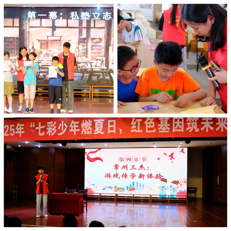 巧設(shè)童趣課堂,播撒紅色種子。實(shí)踐團(tuán)將“三杰”故事帶進(jìn)了武進(jìn)區(qū)寨橋小學(xué)暑期夏令營,精心打造了“三杰童趣課堂”。課堂將“游戲傳學(xué)”新體驗(yàn)取代傳統(tǒng)宣講,通過開展“三杰知識傳話筒”“三杰精神盲盒游戲”“三杰知識拼圖”等趣味活動(dòng),讓孩子們在游戲中體驗(yàn)、在歌聲中銘記、在思辨中領(lǐng)悟,明確作為青少年的使命與責(zé)任。課堂還融入了“我唱三杰好榜樣”兒歌,志愿者們將踐行“三杰”精神的身邊榜樣編入朗朗上口的兒歌,將宏大精神具象化為守紀(jì)互助、勤學(xué)立志等可學(xué)可做的日常行動(dòng),鼓勵(lì)孩子們把“三杰”精神內(nèi)化于心、外化于行。