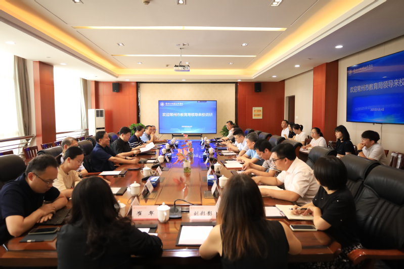 9月4日,常州市教育局副局長紀忠?guī)ш爜碓L我校。我校黨委書記席海濤、副校長蔣正炎出席會議,會議由副校長檀祝平主持。