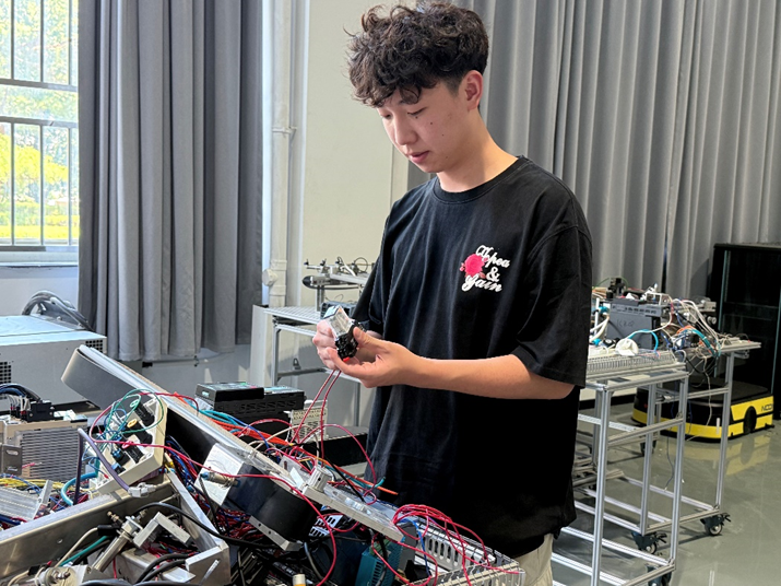 將“數(shù)智化”理念落地,遠(yuǎn)比想象中艱難。作為機(jī)械設(shè)計(jì)與制造專(zhuān)業(yè)學(xué)生,張昊昱擅長(zhǎng)結(jié)構(gòu)優(yōu)化,但智能控制與大數(shù)據(jù)算法卻是他的“短板”?!白罾щy的時(shí)候,創(chuàng)新中心的實(shí)驗(yàn)室就是我的‘第二個(gè)宿舍’,常常對(duì)著代碼和電路圖熬到深夜。”張昊昱回憶道。