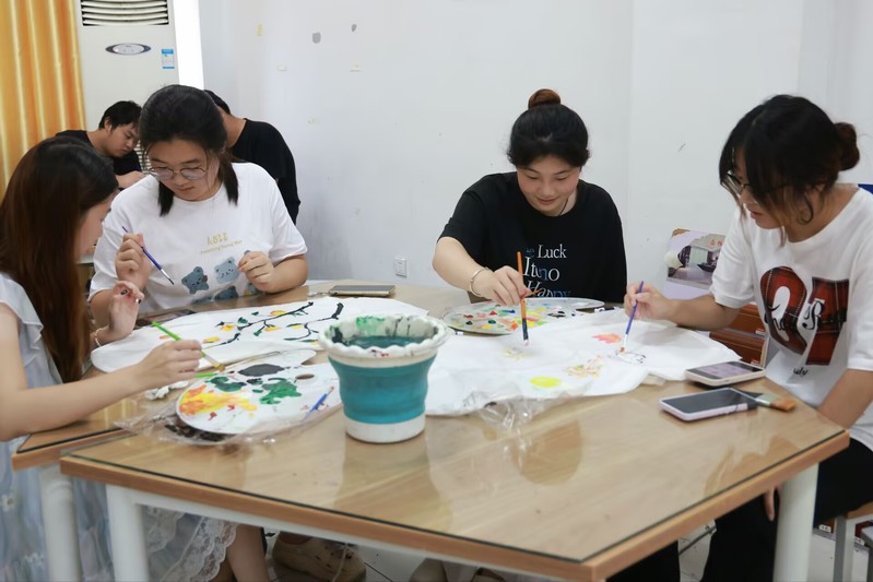 同學(xué)們用畫筆和材料充分發(fā)揮自己的藝術(shù)創(chuàng)意,在潔白的孔明燈上勾勒?qǐng)D案、涂抹色彩。有人繪制了充滿奇幻色彩的星空,還有人寫下對(duì)未來(lái)的美好期許……同學(xué)們相互交流創(chuàng)意、分享技巧,互幫互助完成孔明燈的制作。藝術(shù)療愈的魅力在此刻盡顯,大家在專注于手作的過(guò)程中,暫時(shí)忘卻了學(xué)業(yè)和生活的壓力,心靈得到了放松與舒緩。